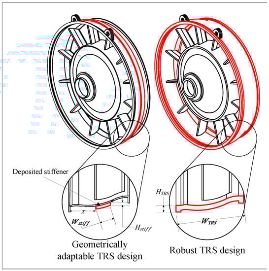 One possible strategy to adapt to changing lifespan requirements is to extend the life of a TRS by additive deposition of a circumferential stiffener on its shroud. Figure 3 depicts the geometrical configuration of the TRS and the deposited stiffener along with the corresponding design optimization variables considered in this study.