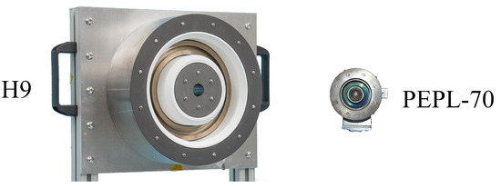 - Kornfeld, G.D.; Koch, N.; Harmann, H.P. Physics and Evolution of HEMP-Thrusters. In Proceedings of the 30th International Electric Propulsion Conference, Florence, Italy, 17–20 September 2007. [Google Scholar]