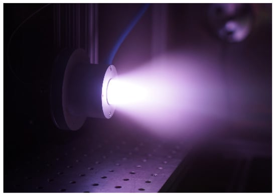 - VanWoerkom, M.; Gorokhovsky, V.; Pulido, G.; Seidcheck, A.; Williams, J.; Farnell, C. Test Results of ExoTerra’s Halo Micro Electric Propulsion System for Microsatellites. In Proceedings of the AIAA Propulsion and Energy 2019 Forum, Indianapolis, IN, USA, 9–22 August 2019; American Institute of Aeronautics and Astronautics: Indianapolis, IN, USA, 2019. [Google Scholar] [CrossRef]