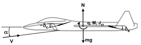 The states are the angle-of-attack and the pitch rate, and the input consists of the elevator and canard deflections. All states are measured.