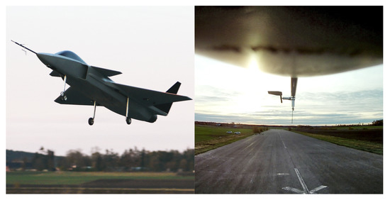 - Lundström, D.; Sobron, A.; Krus, P.; Jouannet, C.; da Silva, R.G.A. Subscale Flight Testing of a Generic Fighter Aircraft. In Proceedings of the 30th Congress of the International Council of the Aeronautical Sciences, Daejeon, Korea, 25–30 September 2016. [Google Scholar]
