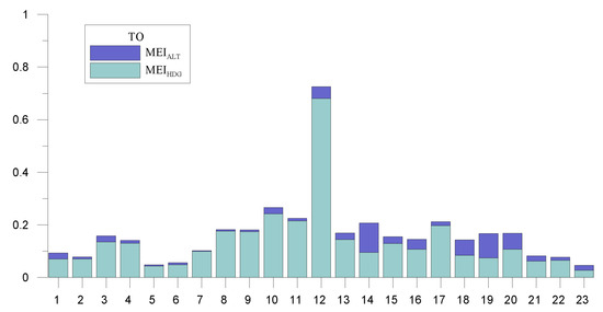 Considering the , is the averaged altitude in the segment, the time instants and are reported in Table 2, is the altitude for the i-th pilot and is the requested altitude during the maneuver. Figure 7 shows the MEI values computed for each pilot during the TO segment. In particular, it is highlighted the because for each pilot appears dominant if compared with the . In Figure 7 the pilot 12 appears out of the mean, moreover, the pilots 14 and 19 shown a higher contribution of with respect to the .
