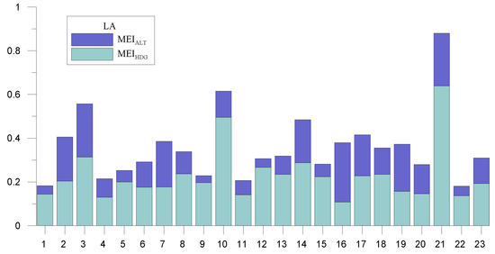 Figure 8 shows the MEI values computed for the LA segment. Also, in Figure 8 it is highlighted the contribute for each pilot. From the behavior of MEI it is possible to observe that the relative influence of the during LA segment is lower than the TO case; this can be justified by the fact that during LA phase the route is conditioned by the path of the runway.