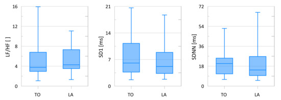 Last, looking at Figure 9, it can also be observed that the sample presents a high degree of variance, in particular, the values of indexes are in some cases far from the median values, for both TO and LA. However, the research of outliers with the interquartile range threshold had shown that possible outliers related to different pilots arose from each HRV indexes. As a consequence, since it was not possible to individuate the existence of pilots samples that are outliers for every index, all the samples have been taken into account to carry out the successive analysis.