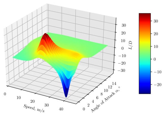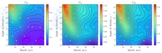 To obtain the lift and drag forces over the hydrofoil, either experiments or simulations including at least cavitation modeling need to be performed to obtain a reasonable estimate at this stage of the design process. It is computationally very expensive to determine the hydrodynamic forces via high-fidelity CFD at every time-discretized point in a takeoff analysis as observed by Seth and Liem [44], so a surrogate model, or an approximation model, is generated for use in the water-takeoff analysis for the optimization problems to reduce the computational burden. The surrogate models will compute the non-dimensional coefficients of the hydrofoil as functions of speed and angle of attack.