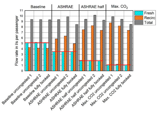 - ASHRAE: Replication of the minimum requirement for outdoor airflow rate (3.5 L/s/passenger) set out by ASHRAE 161