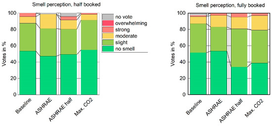 - Neither a trained sensory panel nor subjects could differentiate smell or acceptability for the different airflow conditions. Only in a fully booked cabin slightly worse votes were given at lower outdoor air intake.