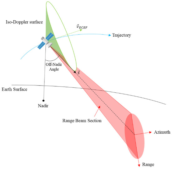 It is difficult to accurately match the surface of the iso-Doppler surface and the beam section in the range direction, but it can be minimized. For this, if is considered as a velocity direction vector in the Earth Centered Earth Fixed (ECEF) coordinate, SAR imaging is possible with a minimum Doppler centroid variation.