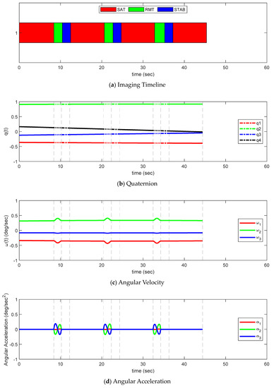However, the stabilization time of the satellite is allocated in consideration of error factors such as the control loop error of the attitude control system and the imbalance of the actuator, which is required to guarantee the image quality. In this study, a stabilization time of 2 s is arbitrarily assumed in consideration of these unpredictable factors.