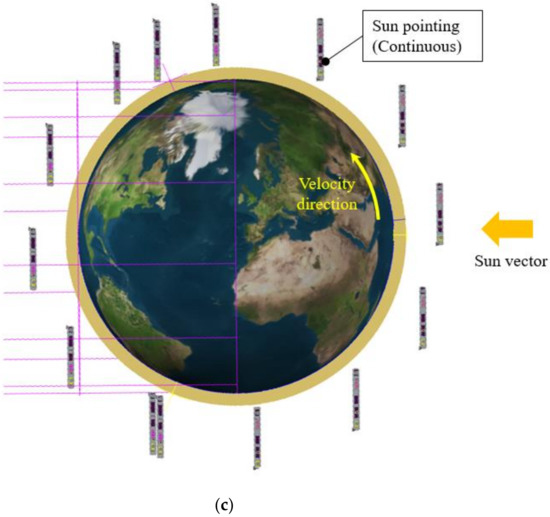 Representative orbital temperature profiles of S-STEP in left-looking SAR imaging operation: (a) hot environment, (b) cold environment, and (c) safe-hold mode.