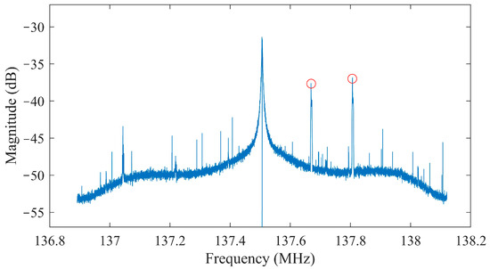 6] could acquire and track the phase and the Doppler measurements of the acquired signal from various LEO constellations. The receiver utilizes the power spectral density (PSD) analysis in order to detect and acquire the transmitted signals. Several parameters of the receiver-like sampling frequency, the center frequency, the window size, and the peak threshold could be defined depending on the downlink specification of each LEO constellation. The receiver’s tracking block consists of a numerically controlled oscillator (NCO), a first-order loop filter, and a phase detector. This block is able to track Doppler shifts of different channels of one or multiple constellations.