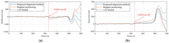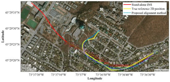 20]. The articles could correct the orientation results and the INS errors, which may be caused by misalignment or vibrations.