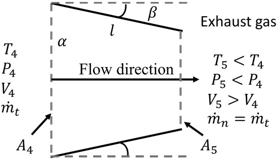 The turbine output velocity can be approximated through the mass conservation principle if the gas path properties (i.e., turbine output pressure, and turbine output pressure ) are known. That is:
