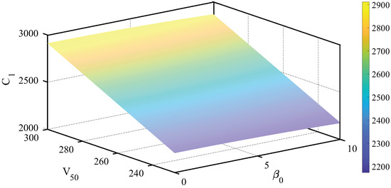 To reduce the effects of this parametric uncertainty, a family of model parameters can be computed for each possible operating condition and nozzle constriction configuration. This is presented in Figure 2, which shows the resulting values of from Equation (25) with respect of the turbojet operating condition and nozzle constriction angle.