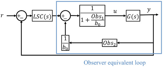 Equivalent representation of the LADRC + LSC, considering the transformation of the observer into a transfer function representation.