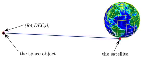where are the right ascension (RA) and declination (DEC) of the object with respect to the sensor, is the position vector of the sensor, and represents the second order norm of a vector.