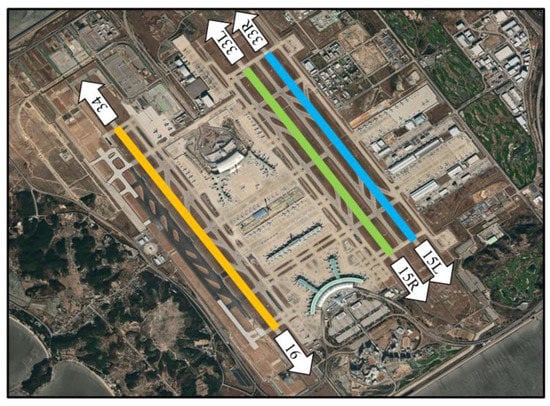 - Google Earth 7.3. 2021. Incheon International Airport 37°27′45″ N 126°26′21″ E. Available online: https://earth.google.com/web/@37.46021582,126.43471177,1.59991967a,24301.36507931d,34.99998106y,0h,0t,0r (accessed on 10 October 2021).