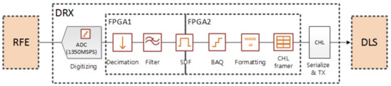 The HSDRU performs the ADC of the received signal. After A/D conversion, the 1st and 2nd low pass filters are used for anti-aliasing. A smart digital filter (SDF) and block adaptive quantization (BAQ) reduce the SAR raw data size. The consultative committee for space data systems (CCSDS) formats and transmits SAR raw data via a channel link.