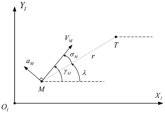 Note that the relative range r eventually decreases to zero in common guidance scenarios as shown in (2a). Hence, as in the previous studies of [18,19,28,29], we used (1a) to replace the time variable t with the relative range r as a differential variable as follows: