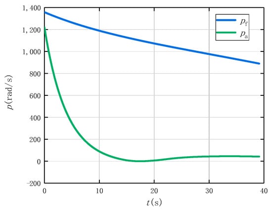 Since the ignition time of the impulse jet is extremely short, the spin rate of the boattail can be assumed as constant during the ignition. In this situation, the right side of Equation (38) is an exponential forcing function. Therefore, the special solution is also an exponential function: