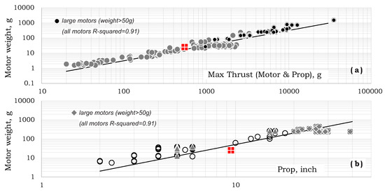 As shown in Figure 5b, the motor diameter was also found to be correlated with max-thrust as