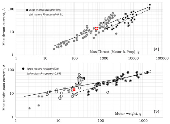 while again, the dashed line shows the max-continuous current for larger motors. Comparing the above two trends shows that, on average, is smaller than by 20%.