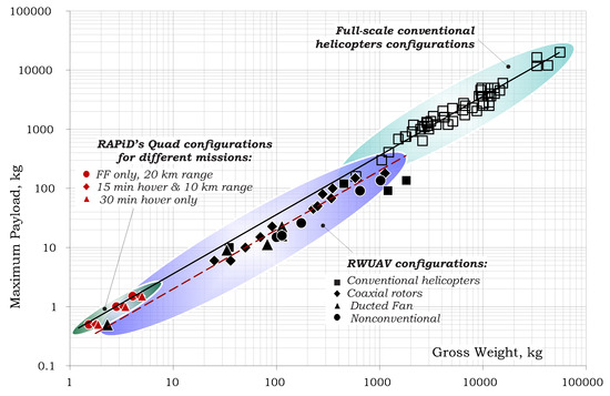 Evaluation of historical design trends during the early sizing and preliminary design stages is a well-known tool for both fixed- and rotary-wing configurations, see Refs. [1,2,3,4,5]. Such trends include performance and weight assessments and may be comprised of cost estimations as well. It should be noted that in principle, the notion “design trend” may also include configuration selection as this selection is highly connected to the mission type. Such trends are expected to be available in the future as information about more vehicles will be available.