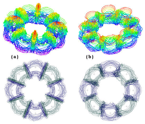 Octocopter’s free-wake examples: (a) all propellers are in-phase; (b) propellers are out-of-phase.
