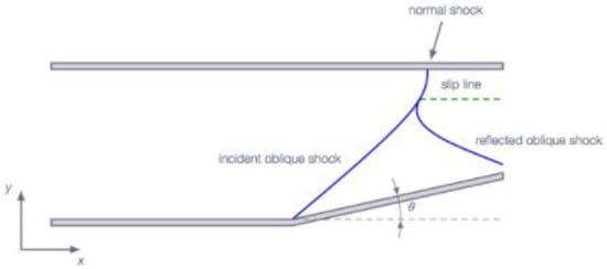 Incident and reflected oblique shocks and normal-shock approximation close to the wall.