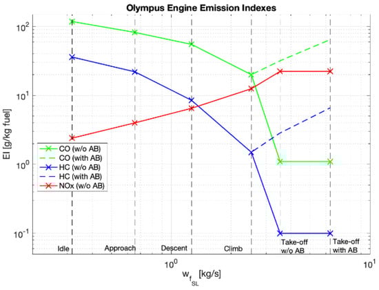 Following the revised method proposed by PoliTO and summarised in Figure 4, the emission indexes in cruise condition for the Olympus engine were evaluated.