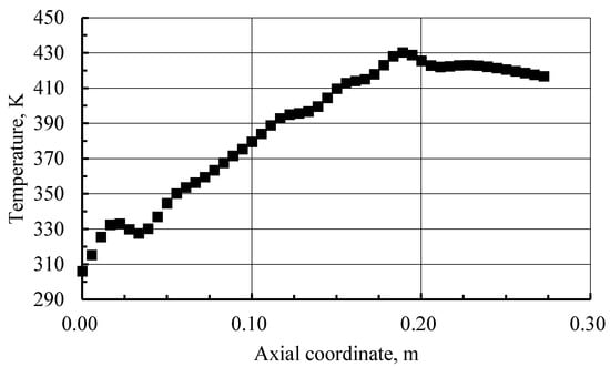 The scheme of the boundary conditions is shown in Figure 1. All of the walls are assumed to be smooth and non-slip. On the sidewall of the chamber, the temperature profile is applied. The real walls are, of course, not optimally smooth possess a certain temperature distribution along the surface that is not uniform. We assume that these differences insignificantly affect the numerical results. The experimental temperature profile is applied, which is shown in Figure 2, at the sidewall.