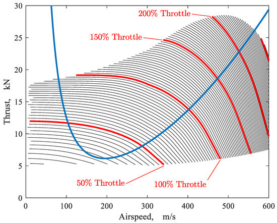 In addition, Equation (17) can be rewritten based on the superposition principle in terms of separate contributions of the airframe and engine (evaluated at cruise flight conditions for the vehicle):