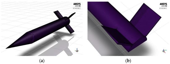 Considering the high Mach and high range of angle of attack analysis, the far-field (Figure 6b) size is made with 50 times the size of length reference () along the positive x-direction and 25 times to the other direction. The extra size to the backside direction of the far-field is to accommodate the compressible flow so it can converge well.