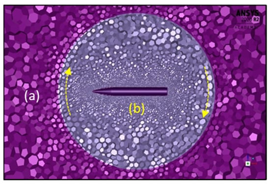 Dynamic mesh set-up: (a) static zone (far field), (b) moving zone.