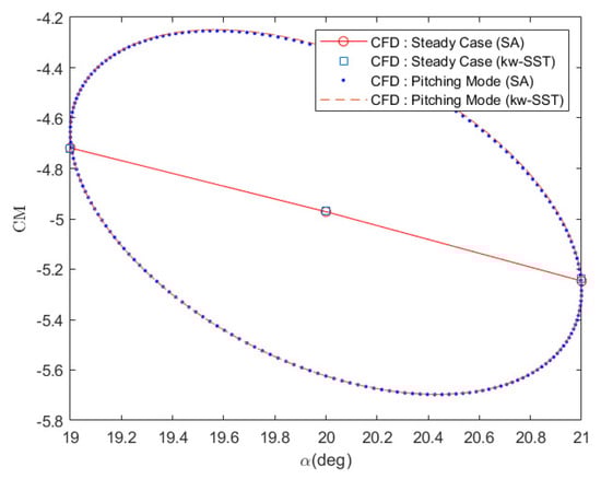 To analyze the effect of dynamic unsteady analysis, a comparison is made by comparing the CM history with respect to the instantaneous angle of attack of unsteady pitching modes at 20 deg and amplitude of ±1 deg with steady case analysis at 19, 20, and 21 deg.
