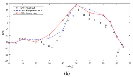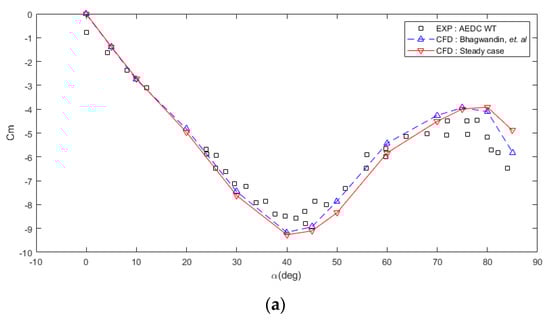 To validate the CFD analysis method for unsteady analysis, the value of the moment coefficient , , and () is compared with the existing wind tunnel result and recent CFD analysis data.