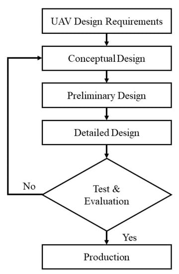 Designing a UAV is an iterative process, as shown in Figure 7. It mainly involves three phases, as follows: