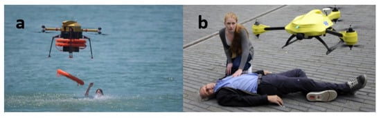 - Delft, T. Ambulance Drone. Available online: https://www.tudelft.nl/en/ide/research/research-labs/applied-labs/ambulance-drone/ (accessed on 25 February 2021).