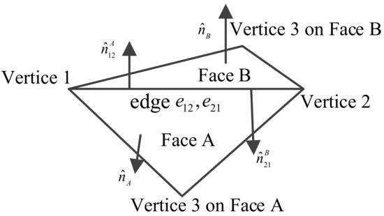 are the modulus of the corresponding vectors. The edges and faces, as well as the normal direction vectors, are shown in