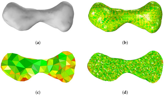 33]. The Octree algorithm uses a cube to cover the entire shape area that needs to be meshed, and then continuously subdivides the cube according to the requirements of the mesh size. The advancing front algorithm generates tetrahedral elements from the boundary of the meshed area and continues to advance to the center until the entire area is covered by tetrahedral elements. The Delaunay algorithm requires the tetrahedron to satisfy the Delaunay criterion [