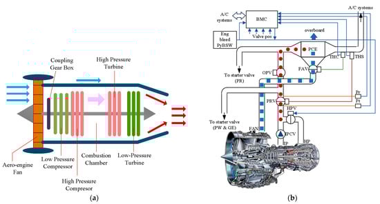 The research object of this paper is the Airbus A330, Rolls-Royce Trent700 aero-engine gas path system. The aero-engine and its gas path structure are shown in Figure 1 [11,12]. The aero-engine gas path is composed of Bleed Monitoring Computer (BMC), Temperature Control Thermostat (ThC), Solenoid Thermostat (Ths), Regulated Pressure Transducer (Pr), Transferred Pressure Transducer (Pt), PreCooler Exchanger (PCE), OverPressure Valve (OPV), Fan Air Valve (FAV), Intermediate Pressure Valve (IPCV), High Pressure Valve (HPV), and so on.