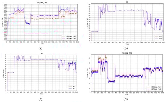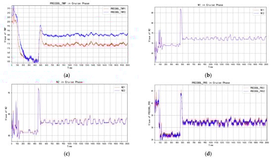 The gas path monitoring data of the whole flight phase includes temperature of precooler, speed of engine N1, speed of engine N2, and pressure of precooler. The gas path monitoring data is shown in Figure 2.