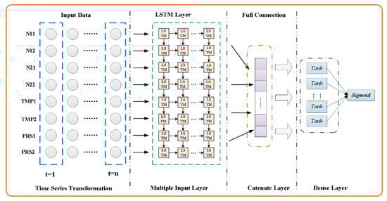 In formula, W and b are the weight matrix and bias of forgetting gate. Formula (6) is the output of the whole LSTM. The number of neurons in the input layer of LSTM is the number of input sequences, and the number of output neurons is the number of output sequences. When predicting the QAR data of aero-engine, one or more future time series of the aero-engine can be predicted by inputting the current or historical data in a period of time. Multi-LSTM prediction flow is shown in Figure 8.