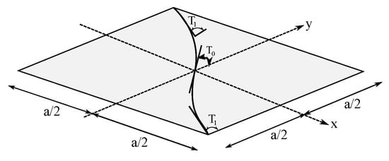 In this work, Lagrange polynomials are used as expansion functions and are denoted as . In particular, the nine-node Lagrange element (L9) is adopted, and it ensures a quadratic interpolation over its domain Lagrange polynomial expansions can formulate the quadratic higher-order kinematics. The L9 polynomial expansion is defined as the following kinematics proposed by [16,45,46]:
