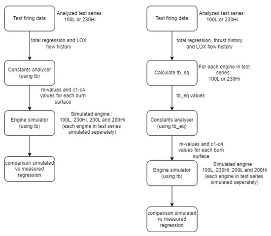 To investigate this empirically, the results from regression simulations with and without the use of equivalent burn time are compared to the results from a number of firing tests. The measured LOX flows from the firing tests are used as oxidizer inputs for these simulations. This reduces to some degree the overshoot error, but does not eliminate it as other transient effects are still unresolved. The engine test series used in this analysis are shown below in