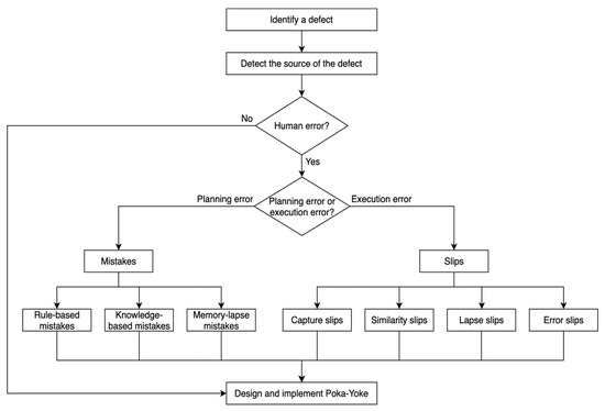 As mentioned earlier in this paper, to err is human. This belief is commonly considered in the field of lean manufacturing literature and cognitive sciences. Nevertheless, most of the accessible lean manufacturing literature has concentrated on categorising poka-yoke devices and giving numerous examples for these devices, without considering or explaining why these human mistakes occur. Stewart and Grout [24] state that mistake-proofing in the field of operations management needs a theoretical foundation that is concerned with and studies why humans make mistakes. This theoretical foundation has been established and guided to some extent in Stewart and Grout [24]’s work. The combination of cognitive science and mistake-proofing science has been discussed later on by the work of Pakdil et al. [25], where a methodology that combines human-related errors with system-related errors was proposed and followed by a case study to validate the model. Hence, it is crucial to psychologically understand and analyse human errors.
