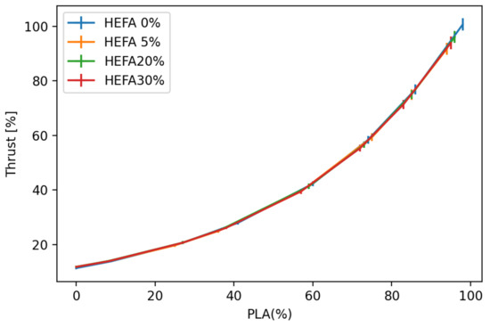 It is noteworthy that despite its name, PLA is proportional to rotational speed instead of thrust (Figure 23 and Figure 24). This is the effect of FADEC operation which was not modified in this work.