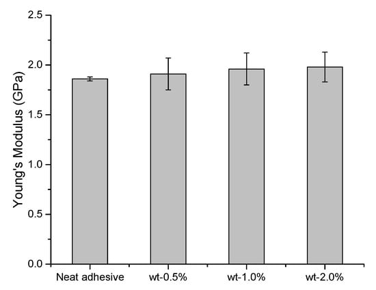 Comparison of the Young’s modulus of the MWCNT-filled adhesive and the neat adhesive [].