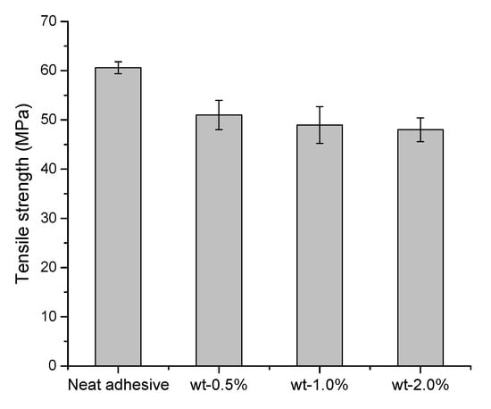 Comparison of the tensile strength of the MWCNT-filled adhesive and the neat adhesive [].