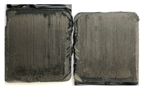 The bonding capability of the nano-reinforced epichlorohydrin/cardanol adhesive was evaluated by means of the lap shear strength (LSS) which was measured by lap-shear tests conducted on composite and aluminum bonded joints, according to ASTM D5868-01 and ASTM D1002-10 standards, respectively. The LSS tests were conducted using an MTS 100 kN testing machine at a loading rate of 1 mm/min. Five specimens were tested for each case. The dimensions of the carbon fibre reinforced polymer (CFRP) adherents are 100 × 25.4 × 2.5 mm (Figure 4a) and the dimensions of the aluminum adherents are 101.6 × 25.4 × 2.5 mm (Figure 4b). The overlap length was 25 mm for the CFRP specimens and 25.4 mm for the aluminum specimens. In both cases, 25.4 × 25.4 mm tabs were used.